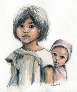 Sur un sentier raide et pierreux, j’ ai rencontré une petite fille qui portait sur son dos un petit garçon.